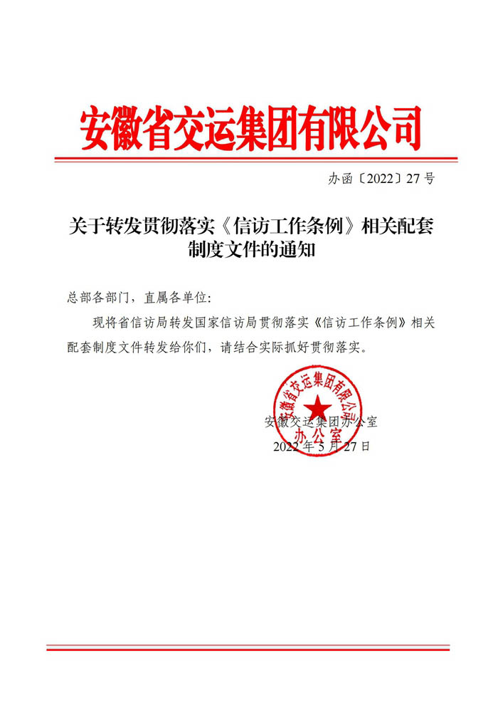 關(guān)于轉(zhuǎn)發(fā)貫徹落實(shí)《信訪(fǎng)工作條例》相關(guān)配套制度文件的通知
