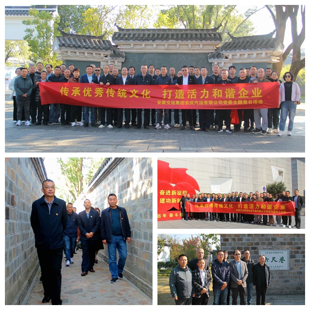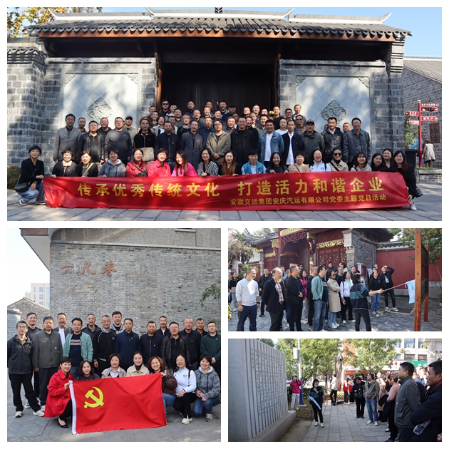 為深入貫徹習近平總書記考察安徽時的重要講話精神,進一步弘揚中華優(yōu)秀傳統(tǒng)文化,加強精神文明建設,提升黨員干部的崇德尚禮品質,安慶公司黨委于11月7日至8日,精心策劃并組織了以“傳承文化精髓,打造和諧企業(yè)新篇章”為主題的黨日活動。此次活動由公司黨委主導,桐城分公司黨支部具體承辦,市客運分公司黨支部積極參與協(xié)辦,實現(xiàn)了全司黨員干部的廣泛參與。