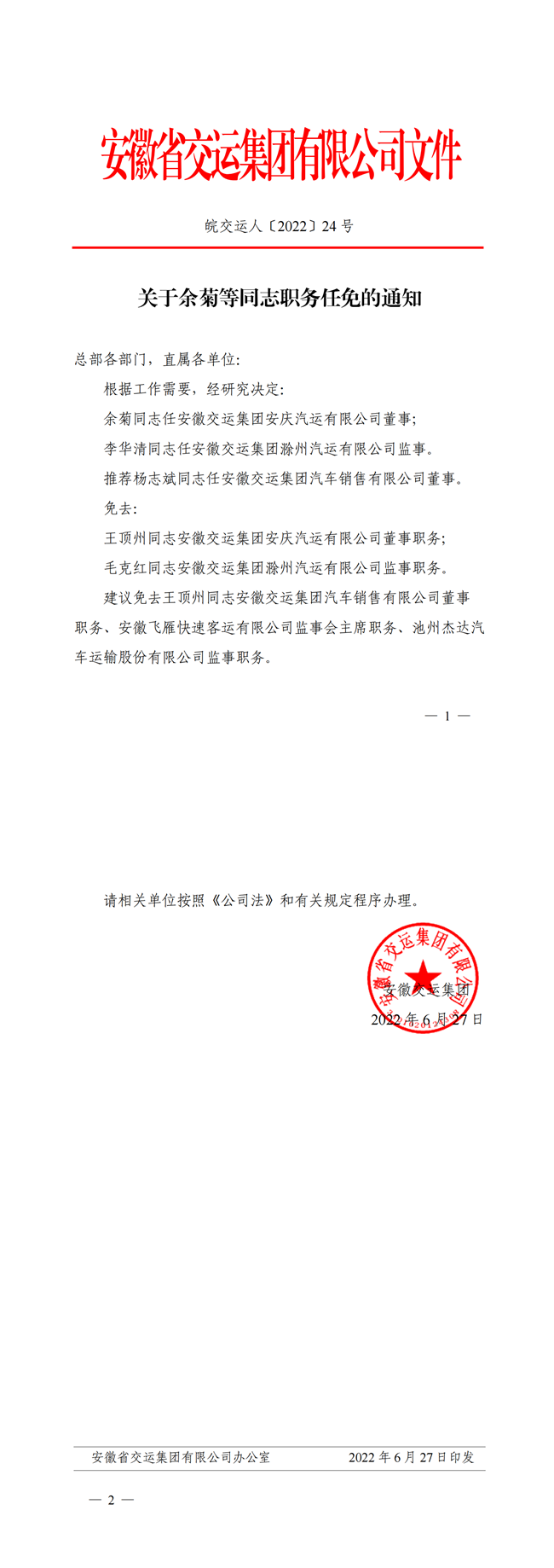 關(guān)于余菊等同志職務任免的通知